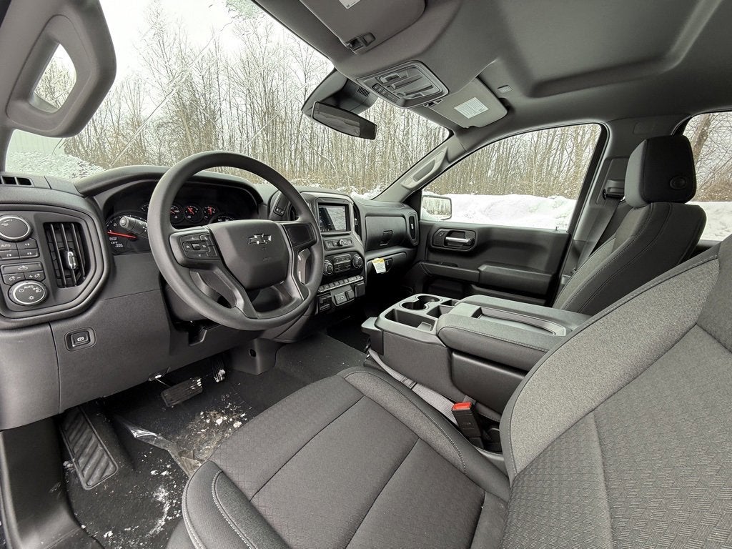 New 2026 Chevrolet Silverado 1500 Custom Trail Boss Crew Cab in Black with a Jet Black Cloth interior, ready for immediate delivery at Cavallaro-Neubauer Chevrolet. This Chevy Silverado 1500 TrailBoss is equipped with the fantastic 5.3L EcoTec3 V8 paired to a 10-speed automatic transmission, underpinned by Z71 off-road suspension and push button 4WD with an integrated trailer brake and 9,300 lbs of towing capacity. Looking for that perfect V8 half ton with more than enough room for the entire family and all of the dogs? This one works on every level, with just that added bit of off-road ready height straight from the factory. There is tons of USB and USB-C charging to go around so that even the longest trips are well connected for all, with Chevrolet Infotainment bringing both Apple CarPlay and Android Auto. Stream all of your calls, music, podcasts and more with ease. The weathertechs are already there, so this one isnt afraid of playing in the mud, just wipe them down and get back to work! The driving dynamics are better than any of the other off-road half ton options by miles, with comfortable daily driving dynamics that still work excellently when the road disappears entirely. The chunky tires provide the grip, while that V8 and 10-speed work together marvelously to give you all of the power you need when you need it. Make the upgrade that works for everyone with this sharp Chevy Silverado 1500 Trail Boss today at Cavallaro-Neubauer Chevrolet!