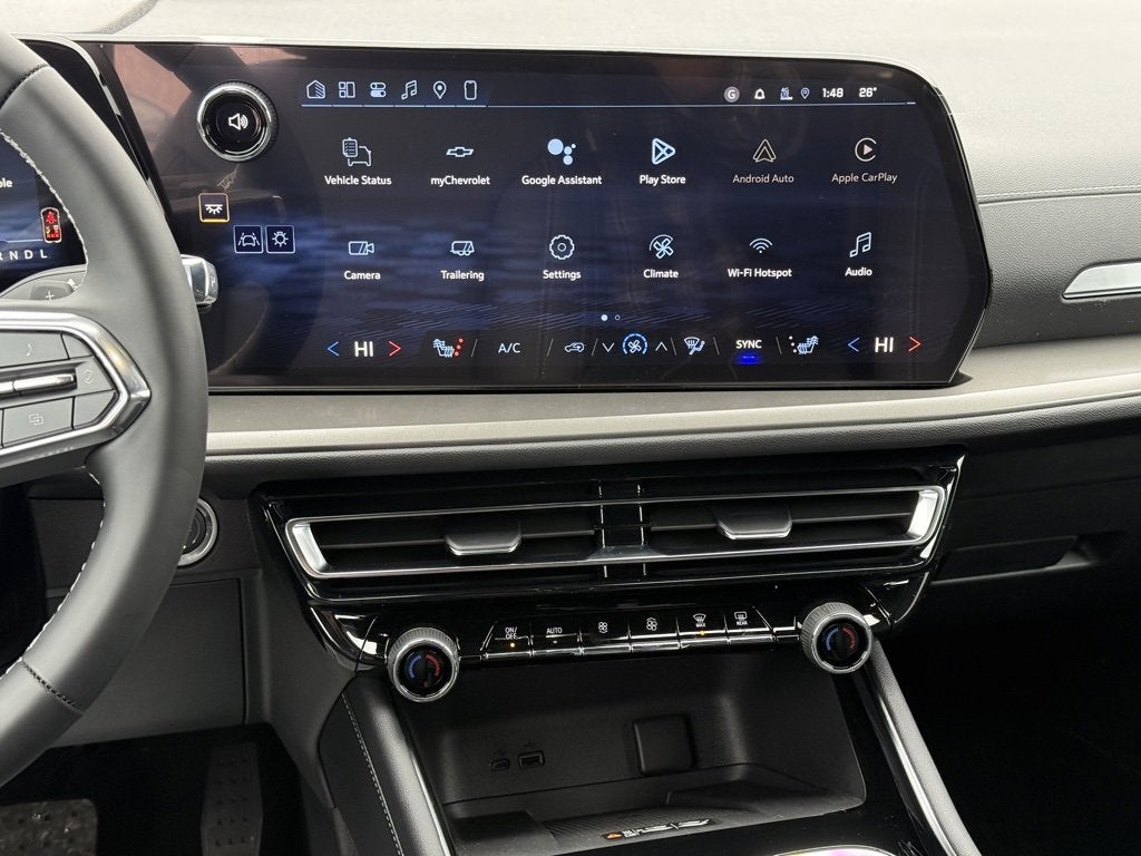 New 2026 Chevrolet Traverse LT AWD in sharp Radiant Red Tintcoat with a Jet Black Evotex Synthetic Leather interior, ready for immediate delivery at Cavallaro-Neubauer Chevrolet. This Chevy Traverse LT AWD is equipped with the 2.5L DOHC Turbocharged inline-4 paired to an 8-speed automatic transmission sending power to all four wheels while getting an impressive 24 MPG highway. This comfy people-mover is perfect for a family on the go, with three rows of USB-C charging to make sure that everyone gets there with full batteries. The Chevrolet Infotainment is massive, and operates at an incredibly high resolution and responsiveness with native Apple Carplay and Android Auto. This means you get to stream all of your calls, music, podcasts, directions and more with steering wheel mounted audio controls to make sure you keep your eyes on the road. The front seats and steering wheel are heated for year round comfort, with remote start to make sure that its always the right temperature when you go to use it. The rear hatch opens and closes with the press of a button, and with the rear seats you can configure it to your cargo and people hauling needs in seconds. Best of all, this one has your back with tons of high tech safety features to watch your back including rear cross traffic alert, side blind zone warning, adaptive cruise control, and automatic pedestrian and cyclist braking. This one is perfect for all of your family hauling needs with the brains and safety features to keep you safe and connected no matter how far you take it. Do not wait, make the upgrade that makes sense for the whole family with this sharp Chevy Traverse LT AWD today at Cavallaro-Neubauer Chevrolet.