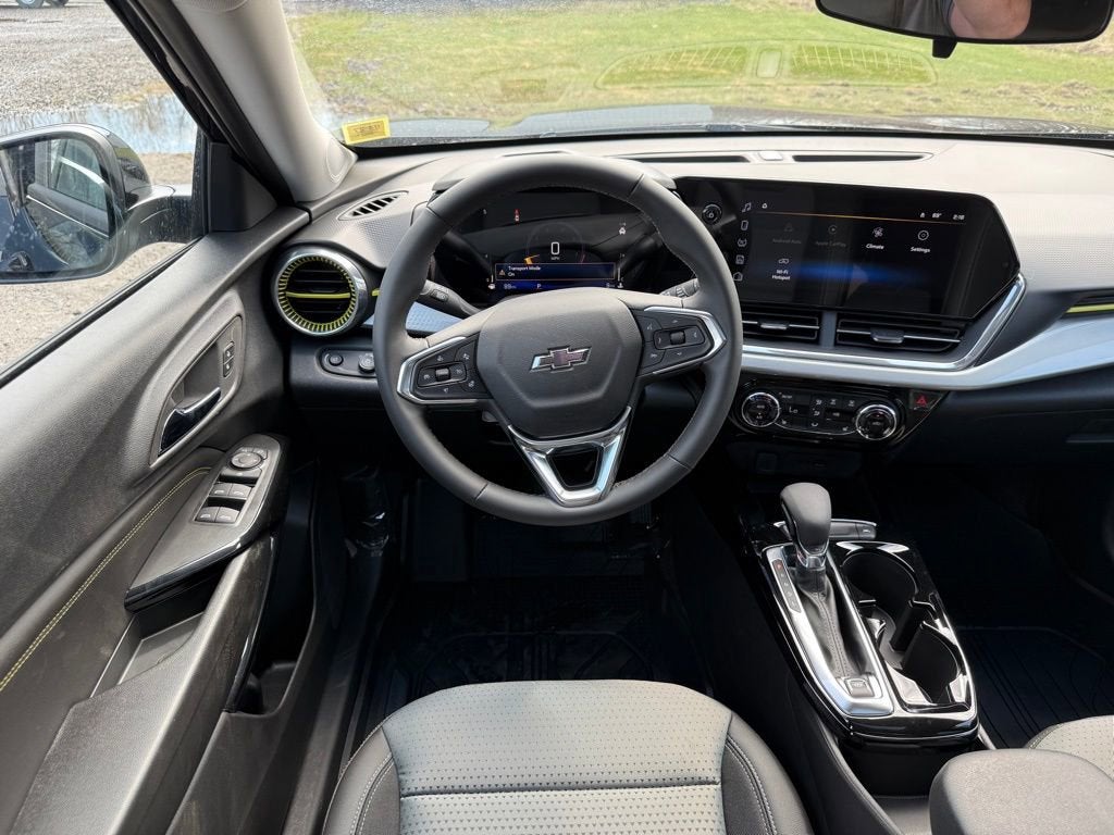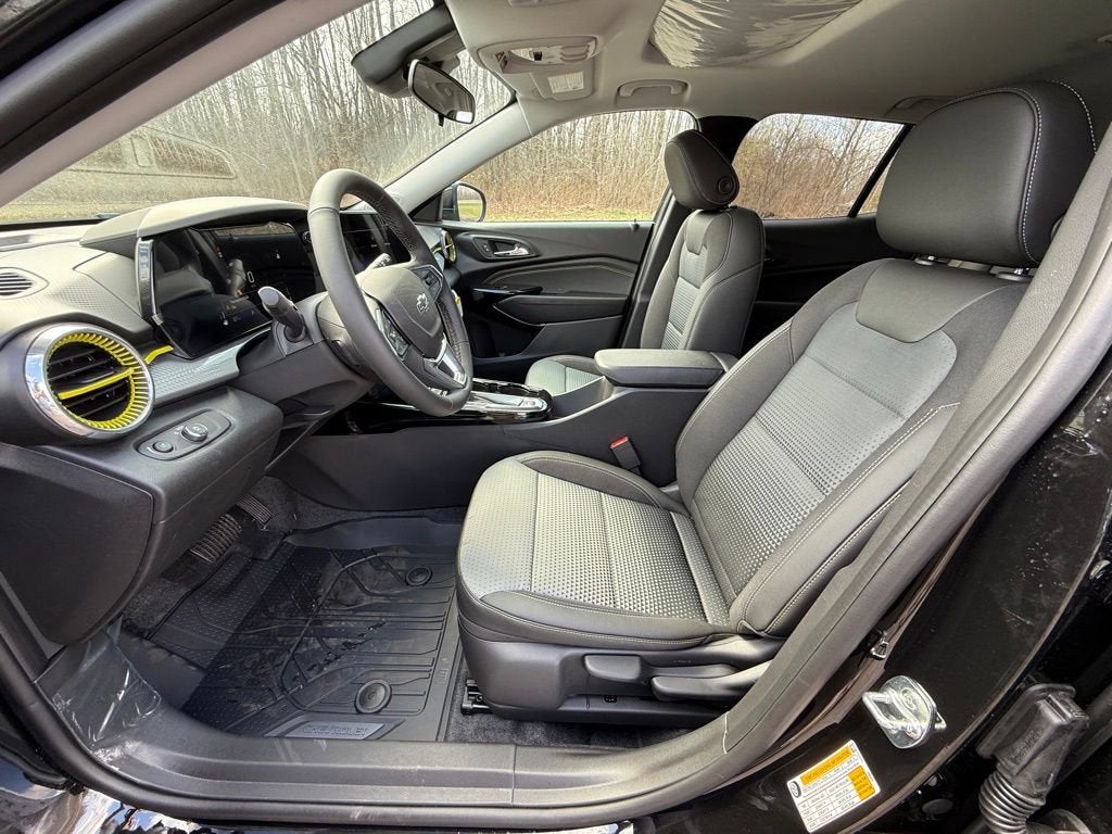 NEW 2026 Chevrolet Trax LT in Black with a Jet black and Yellow Accented Cloth interior, ready for immediate delivery at Cavallaro-Neubauer Chevrolet. This Chevy Trax LT is equipped with the 1.2L Direct Injected Turbocharged inline-3 paired to a 6-speed automatic transmission powering the front wheels and achieving an incredible 30 MPG Highway on the commute. The Chevy Trax is one of the best buys in the entire small crossover segment that has completely taken over the market, and killed most sedans in the process. The interior space is a winner, with tons of connectivity elegantly and effortlessly integrated into a fun driving experience with just the right amount of interior space. The front seats and steering wheel are heated for year round comfort, and that steering wheel comes with all of the right audio controls to make every single mile simple and well-connected. The Chevrolet Infotainment comes with native Apple CarPlay and Android Auto to stream all of your calls, music, podcasts and more on the go with tons of USB and USB-C charging to go around to both rows of passengers. Lower the rear seats in seconds when you have bigger cargo, and enjoy solid rear seat legroom when you do not. This is a rock-solid platform for all of your commuting needs, with punchy turbocharged power getting sent to the front wheels while still getting 30 MPG. Do not wait, make the upgrade to one of the best new car buys on the planet with the 2026 Chevy Trax LT today at Cavallaro-Neubauer Chevrolet.