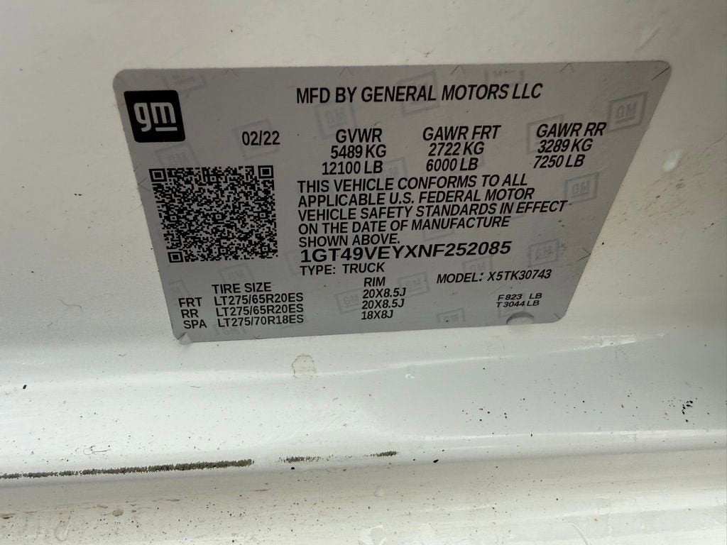 2022 GMC Sierra 3500HD AT4 Crew Cab in Summit White with a Jet Black and Kalahari Accented Leather interior, with 86.6k miles and a Clean, One-Owner CarFax Vehicle History Report with full maintenance records available now at Cavallaro-Neubauer Chevrolet. This GMC Sierra 3500HD is equipped with the incredible 6.6L Duramax Turbodiesel V8 paired to a 10-speed automatic transmission with push button 4WD, AT4 off-road suspension package, 5th wheel prep package, and 20,000 lbs of towing with an integrated trailer brake controller. Looking for 1-ton capability with all of the creature comforts of a high end Tahoe? This is just the ticket, with all of the torque and off-road readiness to get the job done no matter where it takes you and all of the right connectivity and comfort options to enjoy every single mile! The crew cab configuration provides ample room for everyone all the way around, with more than enough USB and USB-C charging to make sure that everyone gets there with full batteries no matter how far away there happens to be. Up front you get heated and ventilated front seats, with a heated steering wheel and wireless console charging thrown in just for good measure. There is a sunroof, HD Surround Vision Camera System and the epic GMC Intellilink infotainment system that brings you both native Apple Carplay and Android Auto through crisp Bose Sound. Stream all of your calls, music, podcasts, and directions every single mile with simple and incredibly powerful pairing that includes steering wheel mounted audio controls. The massive center console brings you even more storage space, and charging options as well. Drop your hitch and go with the fifth wheel prep package that means your boat, camper, and trailer get to go along for the adventure with bed mounted LED Lights and AC Power as well. It has a bit of miles, but it has been impeccably maintained and has the rugged build quality and creature comforts to be an incredible 1-ton diesel upgrade that brings all of the grunt to any application. Do not wait, visit Cavallaro-Neubauer Chevrolet to meet your new GMC Sierra 3500HD!