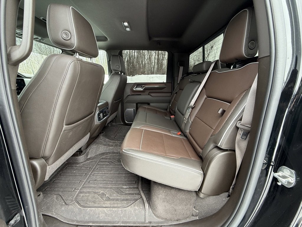 2024 GMC Sierra 2500HD Denali Crew Cab in Onyx Black with an Atmosphere/Brownstone Perforated Leather interior, with 42.1k miles and a Clean, One-Owner CarFax Vehicle History Report available now at Cavallaro-Neubauer Chevrolet. This GMC Sierra Denali is equipped with the showstopping 6.6L Gas V8 paired to a 10-speed Allison automatic transmission with push button 4WD, an integrated trailer brake, and 16,000 lbs of towing capacity. This heavy hitter comes with all of the best creature comforts and connectivity, with more than enough muscle to get the job done. The gorgeous Atmosphere and Brownstone Perforated Leather interior is incredibly comfortable, with tons of rear seat legroom and more than enough USB and USB-C charging to go around. Both the front and rear seats are heated, with ventilated front seats and a heated steering wheel thrown in just for good measure. The massive center console comes with wireless console charging and even more USBs and storage. Up front the GMC Intellilink infotainment streams all of your calls, music, podcasts and more on the go with steering wheel mounted audio controls and tons of high tech. There is a full Heads Up Display to tell you everything you need to know, with rear AUX camera hookups to get your boat, camper, or trailer in on the HD Surround Vision Camera System. This is an incredible rig, with all of the right options and creature comforts to make sure that every single mile is connected, comfortable, and effortlessly good. Do not wait, make the upgrade today to this incredible GMC Sierra 2500HD Denali today at Cavallaro-Neubauer Chevrolet.