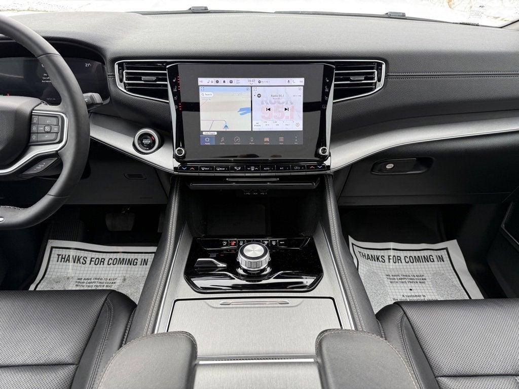 2024 Jeep Wagoneer L Series II 4WD in Diamond Black Crystal Pearlcoat with a Jet Black Leather interior, with 18.7k miles and a Clean, One-Owner CarFax Vehicle History Report available now at Cavallaro-Neubauer Chevrolet. This Jeep Wagoneer is equipped with the show-stopping 3.0L Twin-Turbocharged Hurricane Inline-6 paired to an 8-speed automatic transmission, sending power to all four wheels with full terrain response modes, and 6,130 lbs of towing. If the Suburban isnt quite your flavor but you still need tons of interior space and every high end feature under the sun, this is a great alternative! With ample room for 7 and enough USB and USB-C charging ports to power one of the earlier Foo Fighters tours this Wagoneer is loaded full of comfort and connectivity. The front seats are heated and ventilated, with a heated steering wheel and heated second row captains chairs. The rear seats fold flat with the press of a button in the cargo area, and the rear hatch opens and closes with the press of a button as well. The legroom all the way around is incredible, and the ride is comfortable but connected. With a roof dominated by two massive sunroofs, there is ample light and airflow to all three rows of passengers on those nicer days. UConnect Infotainment remains the only one that can hold a candle to the Chevrolet Infotainment with wireless console charging, native navigation, and an incredible Alpine sound system to stream all of your calls, music, podcasts and more on the go. Then we get to the driving dynamics and are instantly reminded of the conspiracy theory we dreamed up about a CJDR engineer who blew up their Hemi on the same day their partner got rear ended in their BMW M540i so they did the age old dance of taking two dead cars to make one good one! They both have ZF 8-speeds, so why not! The boost is absolutely savage, and you do not expect something this big to go like that, with the 8 speed working well with the terrain response system to get the power down and get the job done. In conclusion, if you are looking for a big, incredibly comfortable and well connected 7-seater that goes like a Messerschmidt, this is the one to get! Do not wait, this one will not be here for long.
